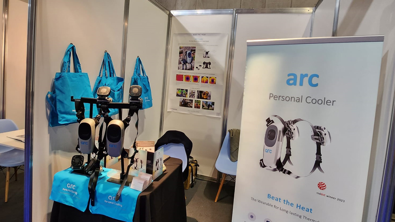 There was much buzz and excitement at our booth (especially since it was a hot 3-day during the exhibition) as attendees explored the ARC Cooler as a seamless, cost-effective, and sustainable solution to heat related challenges in this demanding sector. In particular, the cooling efficacy of the device impressed many, with a good number noting that they felt the cooling effect quickly upon wearing. The versatility of the ARC Cooler was another point of interest with its modular components giving users the option to use and attach the fans to target various hot spots.